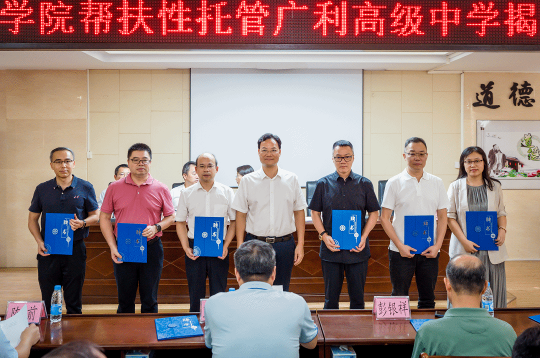 7月18日,鼎湖區舉辦肇慶學院幫扶性托管廣利高級中學揭牌儀式,廣利高級中學正式加掛“肇慶學院廣利實驗中學”校牌。此次合作是肇慶學院和鼎湖區人民政府積極響應國家“縣中托管幫扶工程”和廣東省“雙百行動”戰略部署的重要舉措,標志著校地協同推進優質教育資源共享進入新階段。肇慶學院黨委副書記、校長李琴,副校長肖起清,鼎湖區委書記、肇慶新區黨工委書記劉運通,基礎教育指導專家彭銀祥、陳淑玲、彭司先等出席活動。