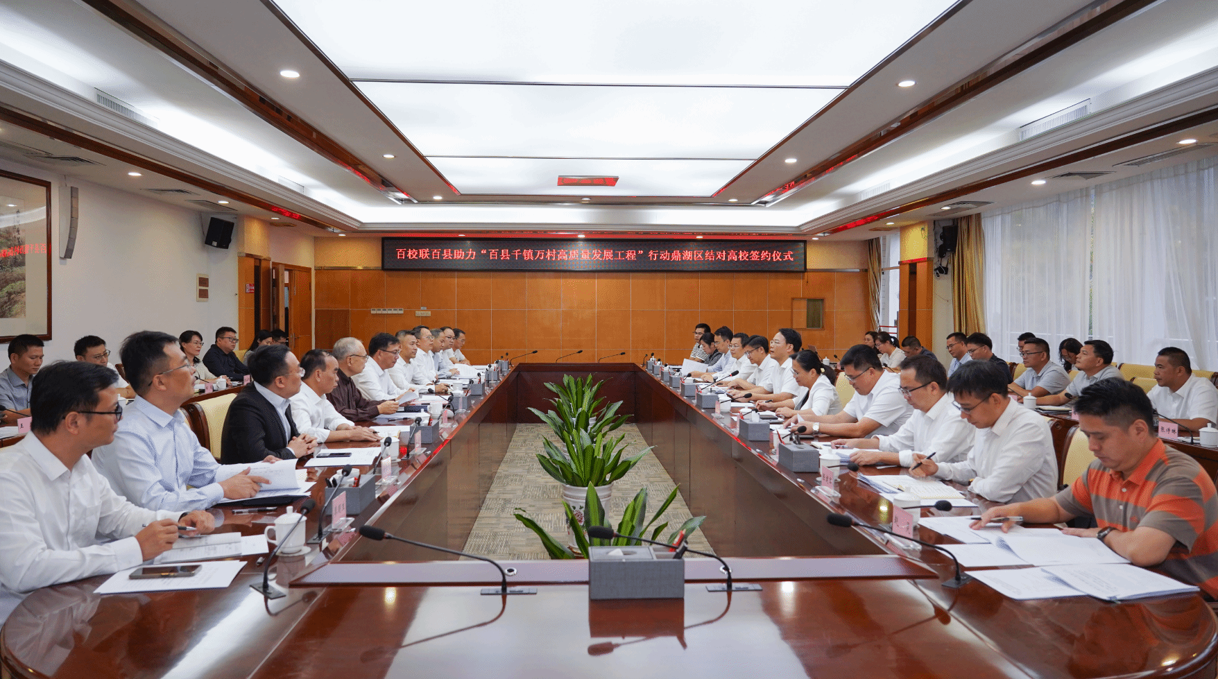 為深入實(shí)施百校聯(lián)百縣助力“百縣千鎮(zhèn)萬(wàn)村高質(zhì)量發(fā)展工程”,強(qiáng)化區(qū)鎮(zhèn)村發(fā)展的人才、智力和科技支撐,按照“區(qū)域所需、高校所能”的原則,10月29日,肇慶學(xué)院、肇慶醫(yī)學(xué)院、廣州應(yīng)用科技學(xué)院助力鼎湖區(qū)“百縣千鎮(zhèn)萬(wàn)村高質(zhì)量發(fā)展工程”行動(dòng)結(jié)對(duì)共建簽約儀式順利舉行。