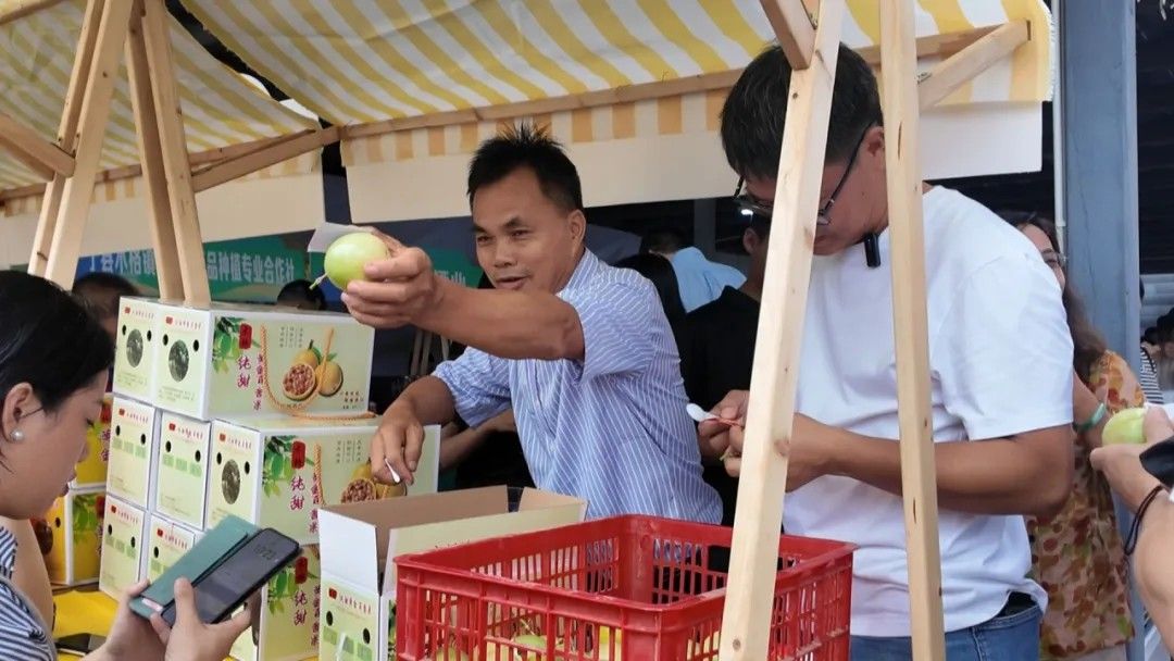 △市民游客在廣寧縣木格鎮第三屆黃金百香果產業暨富硒特優農產品推介活動選購黃金百香果。圖源 廣寧發布