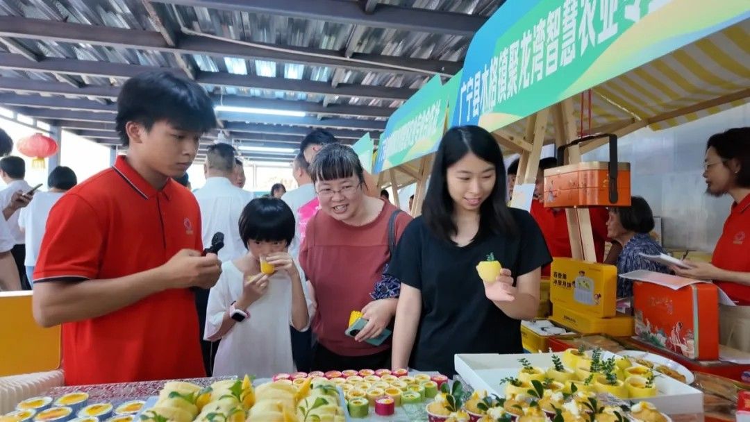 △市民群眾選購百香果冰皮月餅與百香果檸檬月餅。圖源 廣寧發布
