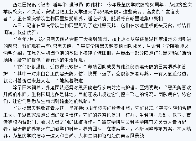 西江日報(bào)|50周年校慶友校送來特殊賀禮 合肥工大黑天鵝“飛入”肇慶學(xué)院