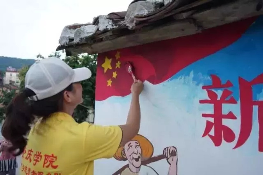 繪制黨建主題墻繪、成立臨時黨支部參與討論洞寮村黨員積分制方案……這是肇慶學院旅游與歷史文化學院“三下鄉”社會實踐隊的主要活動內容。