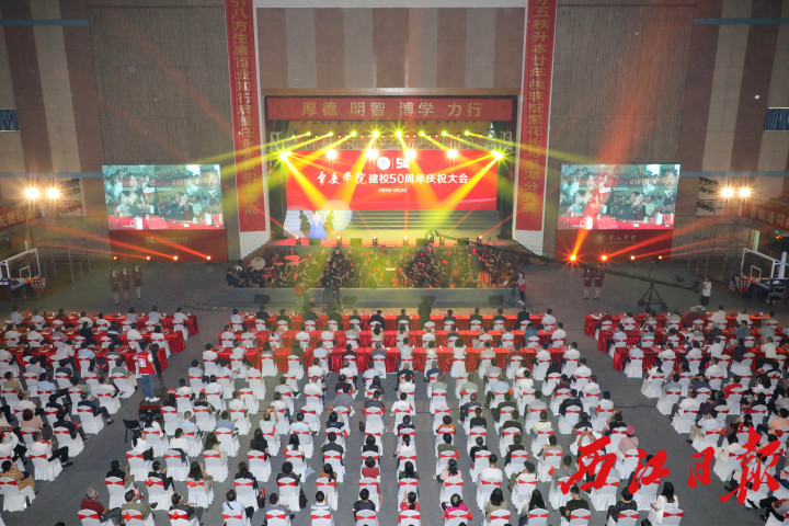 金秋送爽,紫荊飄香。2020年11月21日上午10時,肇慶學院建校五十周年慶祝大會在該校體育館隆重舉行。為做好疫情防控工作,慶祝大會以線上線下相結合的方式舉行,并通過網絡直播與海內外校友分享建校五十周年成就與喜悅。